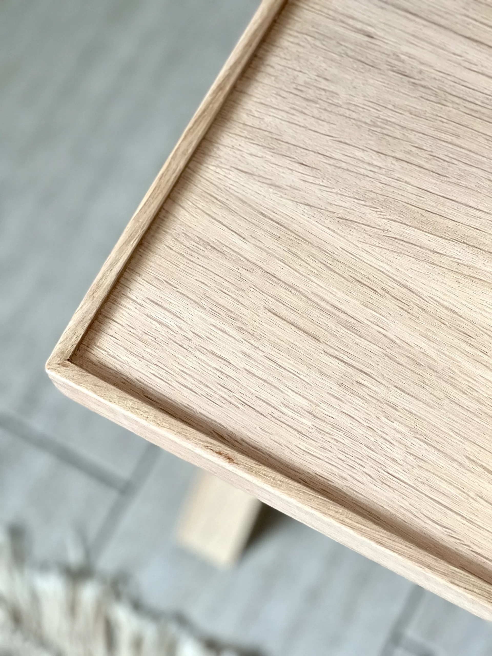Nous sélectionnons un chêne massif français de qualité afin de garantir la solidité et la durabilité de nos produits. Comme toute matière naturelle, chaque pièce détient un caractère unique inhérent au veinage et au grain du bois.